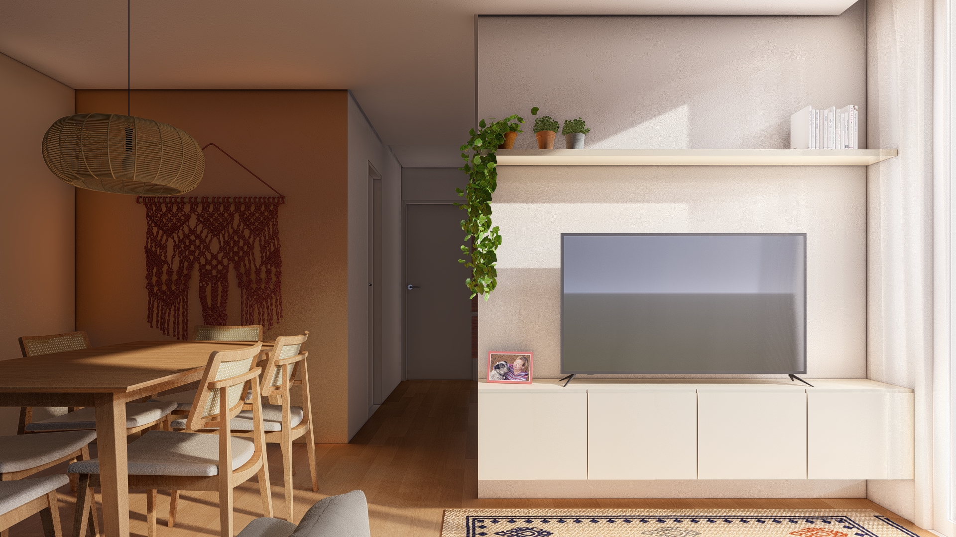 Criamos uma paleta de cores e abusamos de texturas para trazer esse conforto ao lar. Entre tons amadeirados, beges e verde claro, nasce esse espaço.