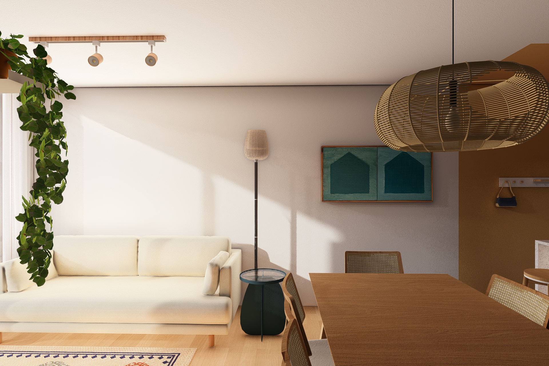 Criamos uma paleta de cores e abusamos de texturas para trazer esse conforto ao lar. Entre tons amadeirados, beges e verde claro, nasce esse espaço.