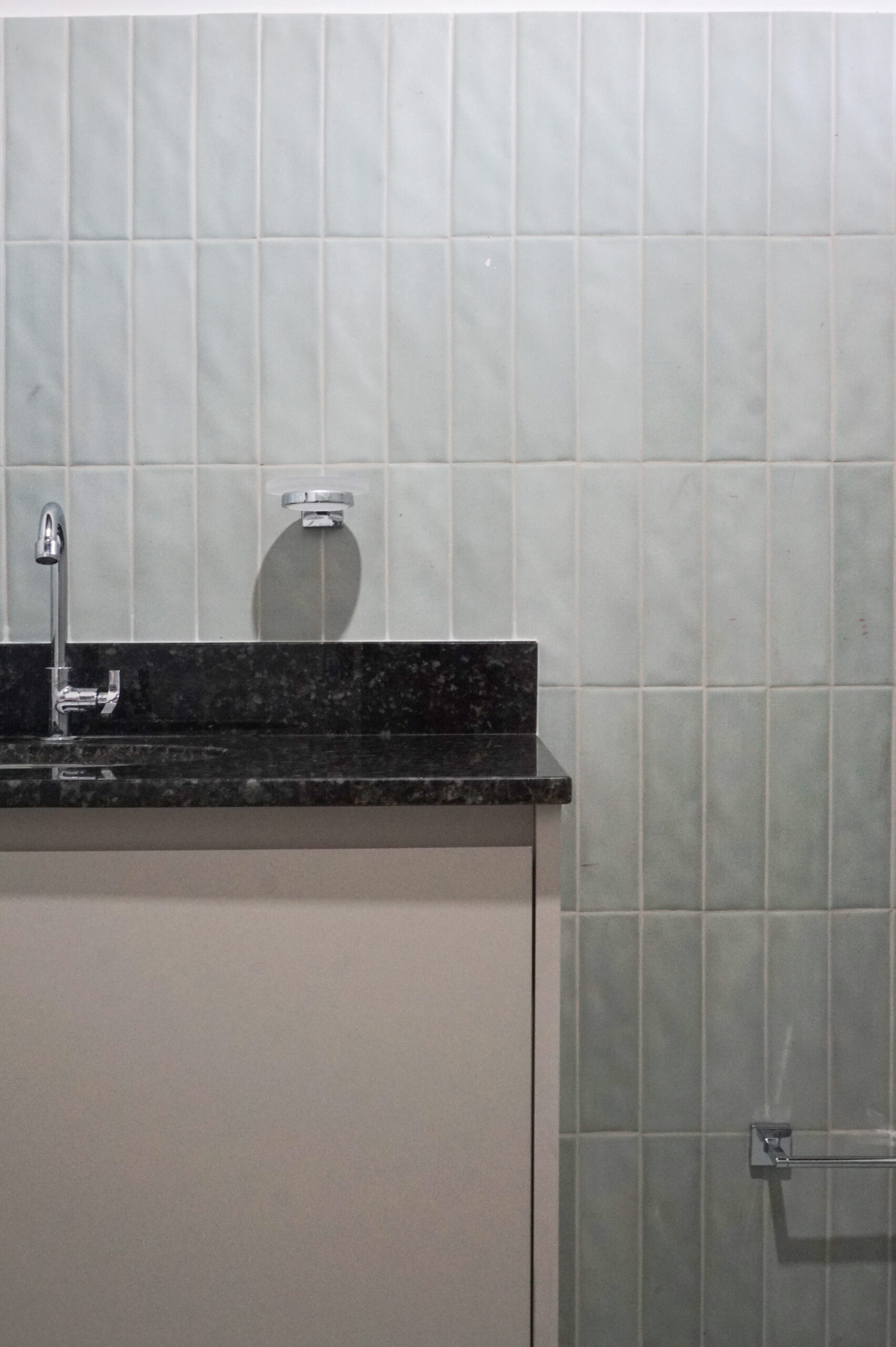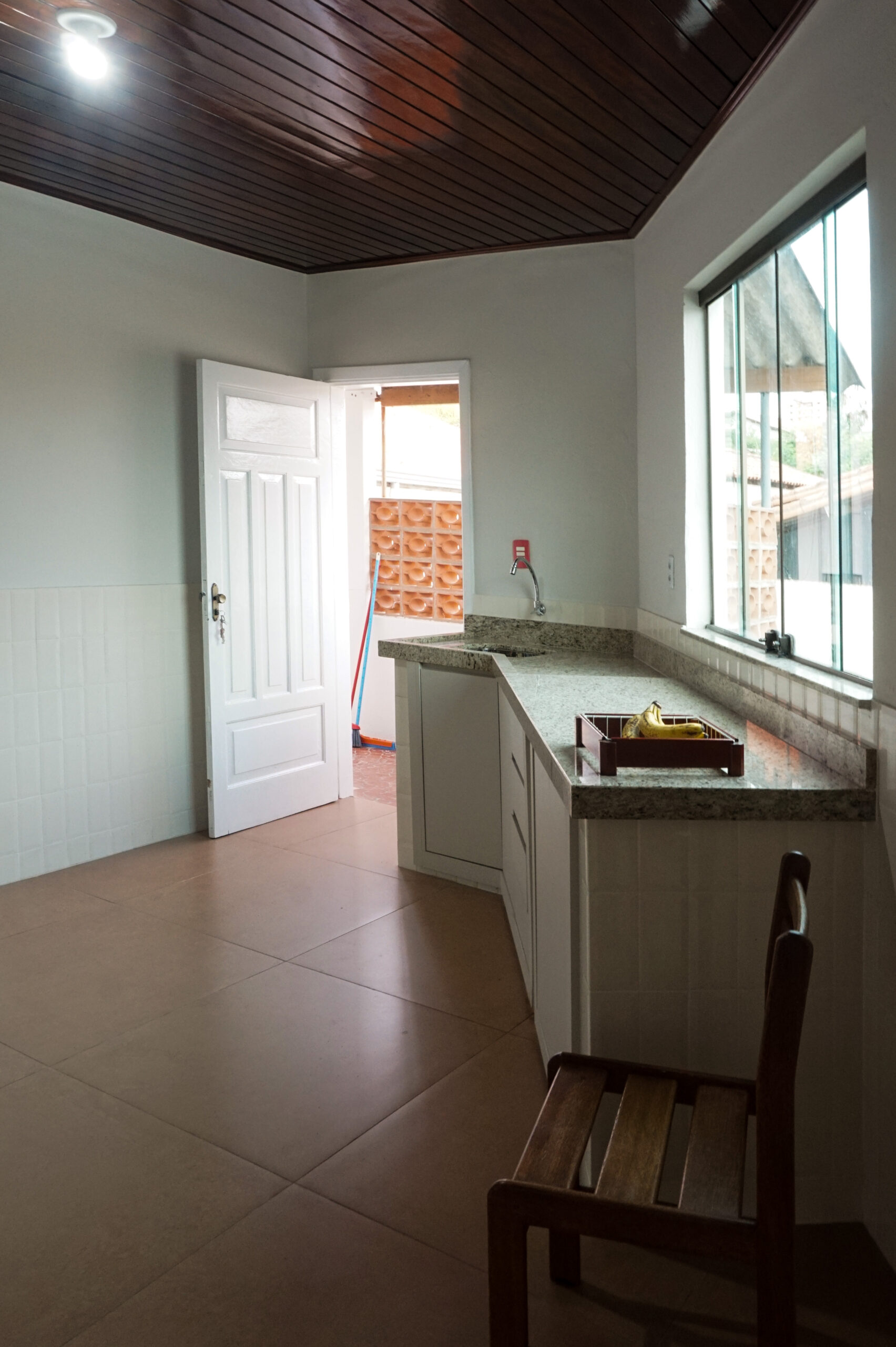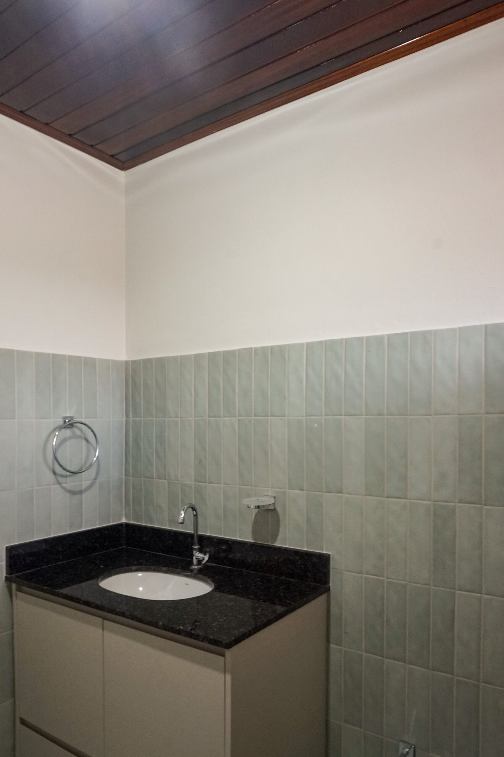 Em seu interior, trocas de revestimentos, marcenarias e marmorarias foram realizadas, a cliente buscava algo neutro para ser mais aceito entre o público que iria alugá-la, mas sem perder a identidade da casa, o calor interno, suas cores, e acolhendo também o quintal pré existente, com cobogó e piso de caquinhos. Desta forma, conseguimos unir o passado com o presente, o antigo com o contemporâneo, para não apagar a história, respeitar suas origens e se adaptar ao futuro.