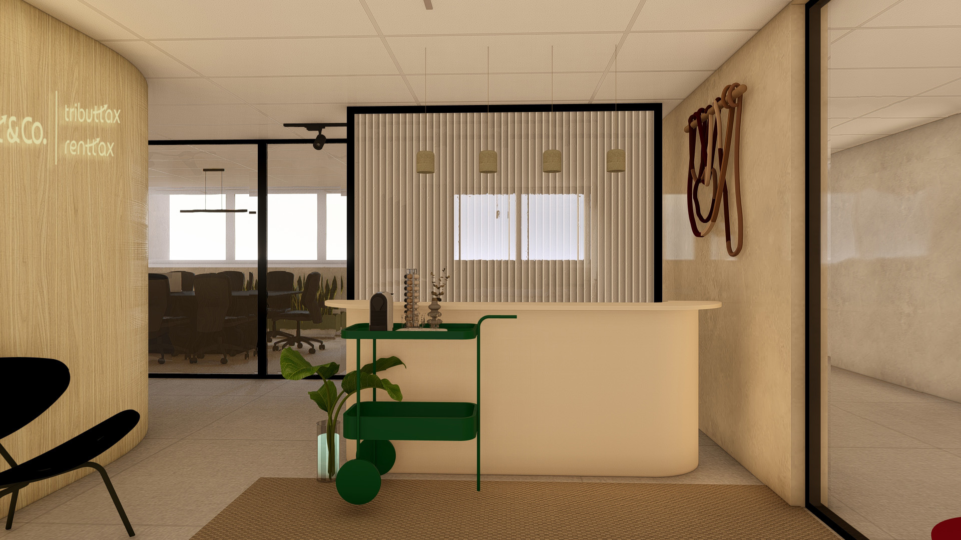 Este projeto foi idealizado para atender as necessidades de um escritório de advocacia em mudança para um novo espaço. A sala já previamente dividida, estava setorizada numa planta “U”, com divisórias nas laterais e ao fundo, e ao centro um volume solto sem cobertura.